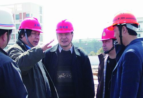 2005年3月,徐洪杰(左二)在上海光源建设现场。上海应物所供图