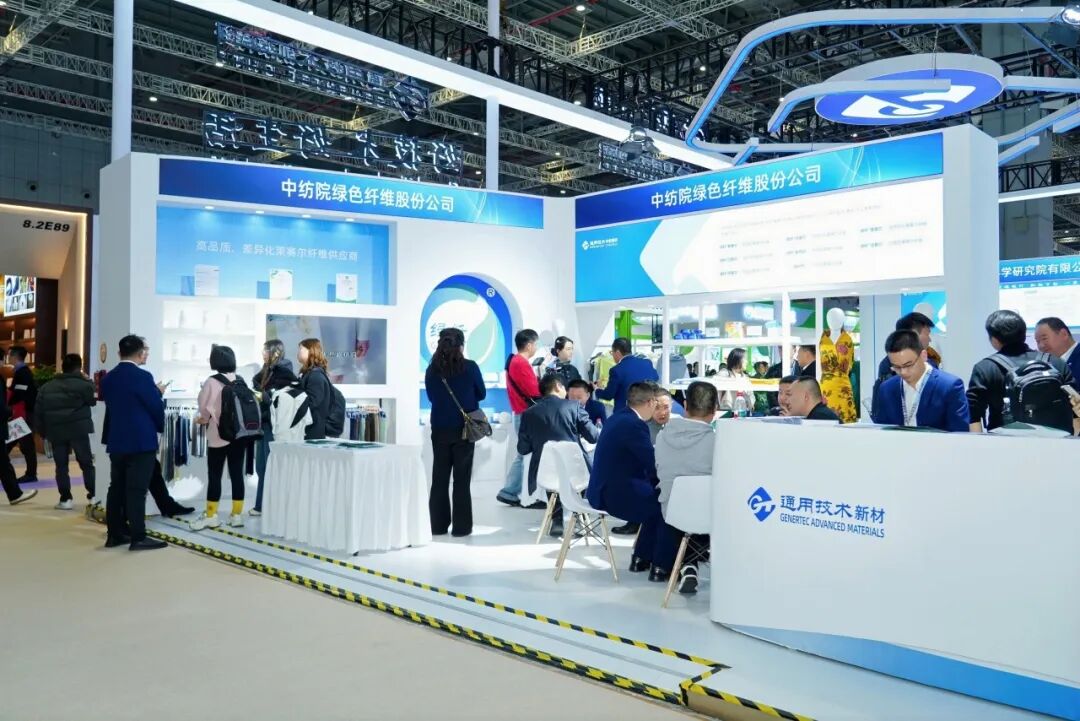 通用技术中纺院成果转化中心重点展示了高品质原位聚合原液着色聚酯产业化成套技术、PETG/PCTG连续聚合成套技术、国产化Lyocell纤维产业化成套技术、超高分子量聚乙烯纤维纺丝成套制备技术、国产聚苯硫醚纤维产业化成套技术、生物可降解PBAT连续化成套技术及EPC工程技术成果应用案例等。通用技术中纺院智能制造团队展示化纤企业数字化转型整体解决方案,以业务痛点为导向,通过顶层规划、统一平台与可复制方法体系,助力企业高效推进数字化转型。通用技术中纺院天津纺科展出温特纶Winterless 保温纤维、稀贝丝 冰逸纤维和稀贝丝墨暖纤维等差异化产品,运用纳米气凝胶改性、稀土材料复合等创新工艺,赋予纤维智能调温、高效隔热等新功能。通用技术中纺院江南分院展示了功能系列与生态植物染系列两大产品线。功能系列包括复用手术服、轻质高强、防刺防割等功能面料;植物染系列涵盖从染料提取到生活艺术品创作的全过程,融合非遗技艺与现代设计。