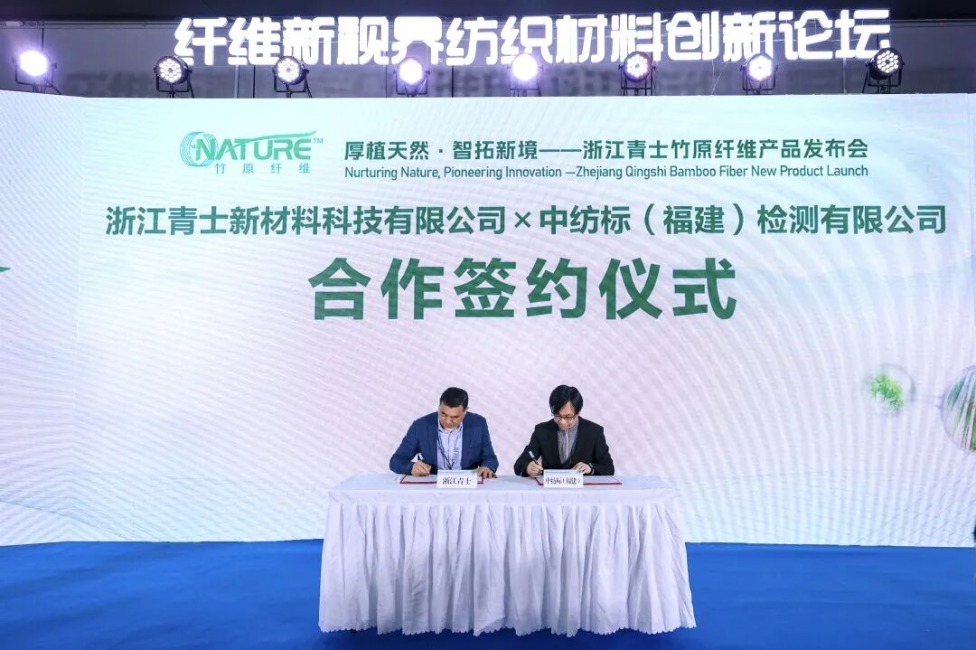 展位现场,合作签约仪式接连举行。3月11日,通用技术新材中纺绿纤携手德国Smartfiber与美国ABW,布局全球高端再生纤维素纤维产业,共同推动Seacell 、Smartcel 海洋驱动型功能性纤维的产业化整合与商业化拓展,助力全球绿色纺织产业升级。3月12日,通用技术新材中纺绿纤与Circulose正式签署合作意向框架协议,双方将围绕再生浆粕供应、莱赛尔纤维生产展开深度合作。此次携手将充分发挥双方技术与资源优势,加速循环可持续原材料的规模化应用,共筑纺织行业绿色低碳循环发展新生态。同日,通用技术新材福建中纺标与浙江青士达成合作协议,双方将开展全链条检测合作,助力破解产业难题,推动竹原纤维产业规范化、标准化、高端化发展。强强联合,以标准筑牢产业发展根基。